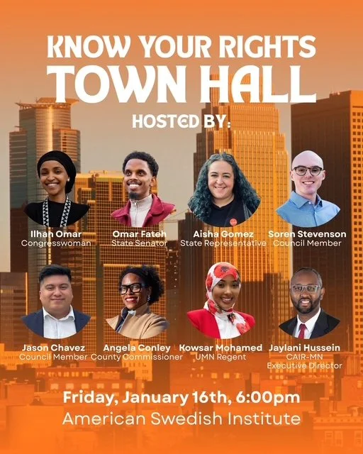 Join CAIR Minnesota and elected officials for a timely forum on Friday, January 16 6:00 pm at the American Swedish Institute. The main topic will be knowing your rights in the wake of the federal immigration presence in Minnesota.