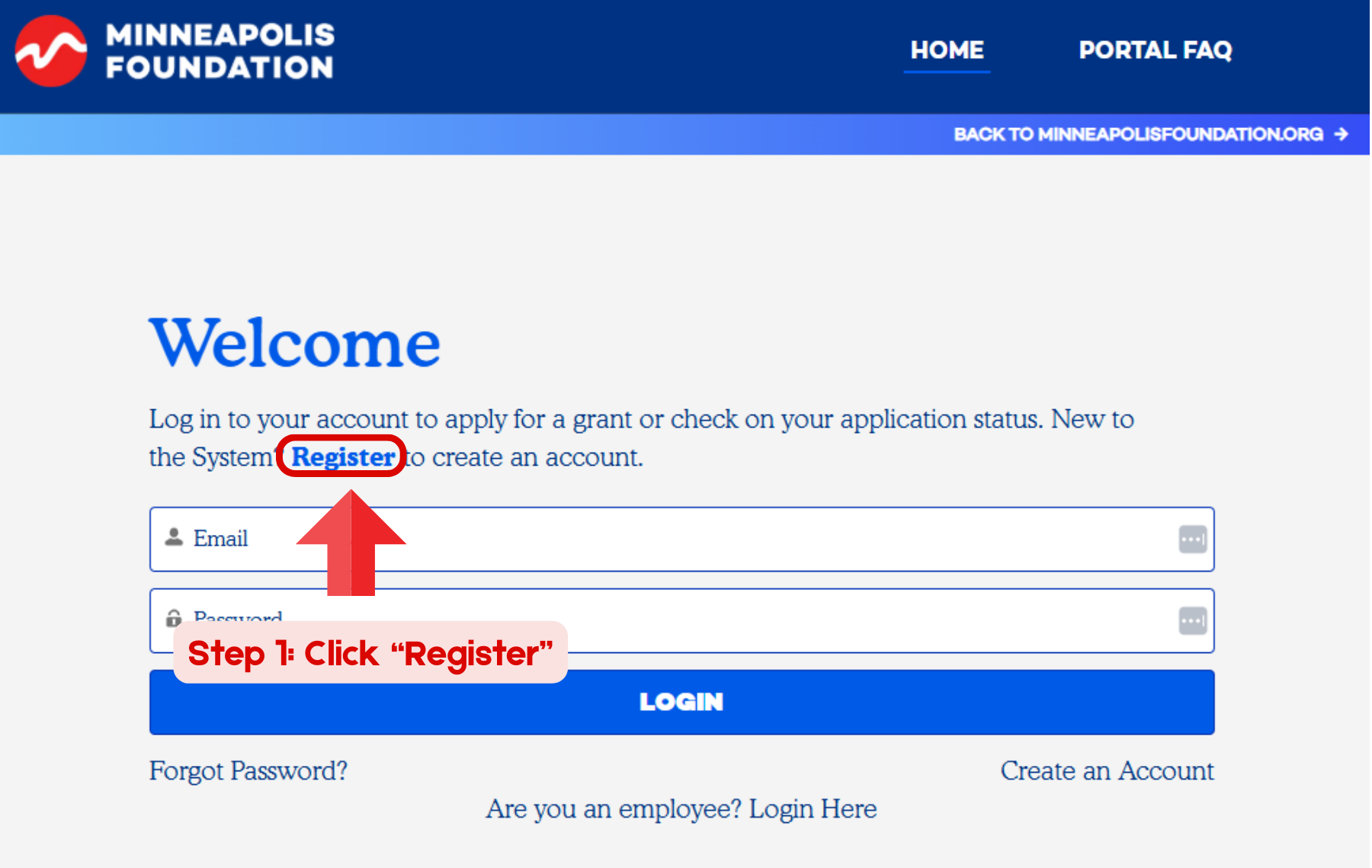 Navigate to: https://theminneapolisfoundation.my.site.com/Portal/s/
