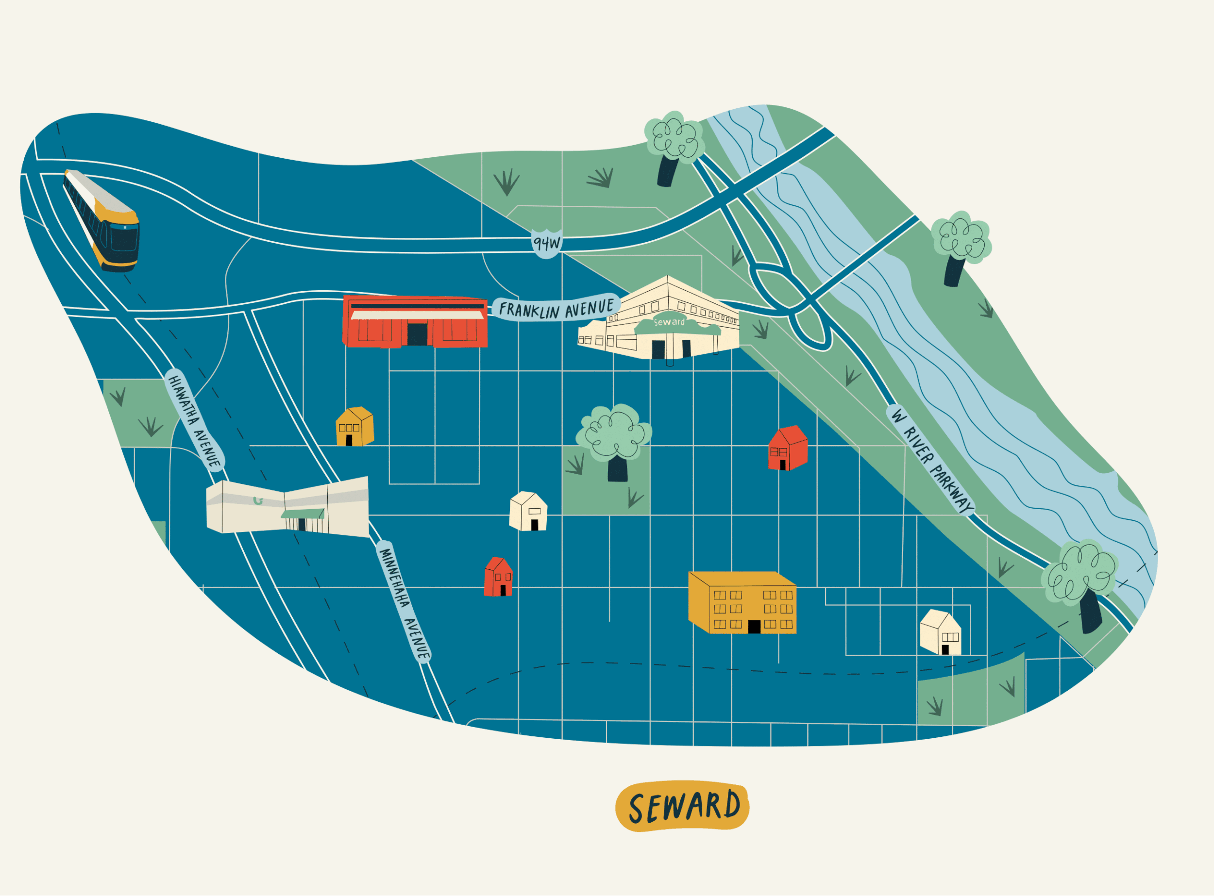 One of the oldest neighborhoods in Minneapolis, the Seward neighborhood first grew from Franklin Avenue, which once marked the southern border of the city of Minneapolis. To this day, East Franklin remains an artery of the neighborhood, home to local businesses, corner shops, community clinics, and nonprofits.